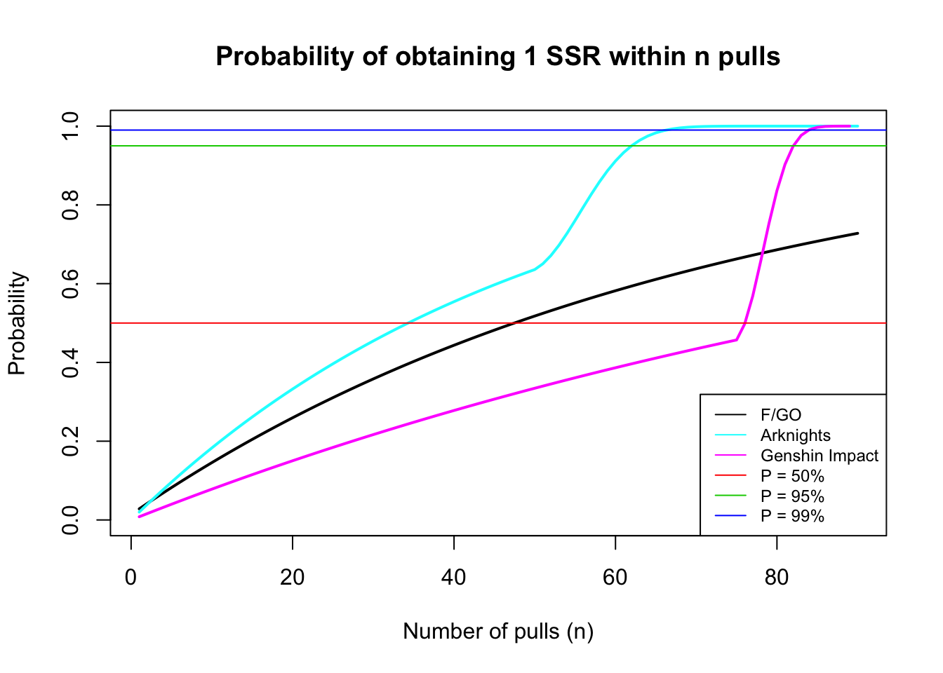 We are using non-event probabilities for all three gacha’s. We are also assuming that you are taking full advantage of the gacha (only doing 10-pulls).
